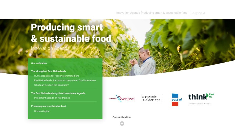 Traditionally, the East Netherlands has been strong in developing innovative solutions and testing them in practice. The region has a strong and broad primary sector and our knowledge institutions and agri-food technology companies are able to come up with integrated solutions for sustainable food production, worldwide. The region is also one of the frontrunners in the field of protein transition.