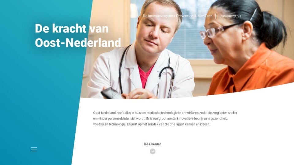 Oost-Nederland heeft alles in huis om medische technologie te ontwikkelen zodat de zorg beter, sneller en minder personeelsintensief wordt. Er is een groot aantal innovatieve bedrijven in gezondheid, voedsel en technologie. En juist op het snijvlak van die drie liggen kansen en ideeën.